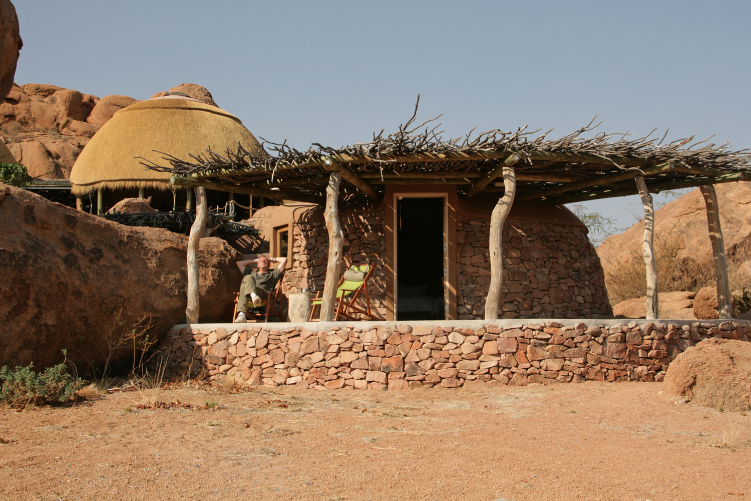 Camp Kipwe is ook weer zo'n gastenverblijf dat we niet snel zullen vergeten. Zo'n rommelige hoop stenen, die niet de naam berg verdient, blijkt - nauwelijks te zien vanaf de weg en zeker niet van de richting van waaruit wij kwamen - een riante toeristenaccomodatie te herbergen. We waren verrukt van ons huisje met twee ligstoelen op het terras, waar alleen de vogels en een kudde rondtrekkende koeien onze privacy en rust "verstoorden". We hadden ook nog alle tijd om hiervan te genieten. Eigenlijk voor het eerst waren de temperaturen zo hoog, dat we echt warm hadden: geen truien en jassen meer nodig!